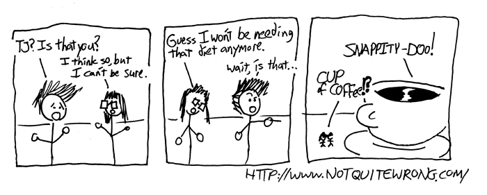 Justin also drew this little gem. If you don't get it, you obviously haven't been checking out the recently upgraded archive section. As of this posting, the archive features 90 comics (including today's) making, yknow, a whole bunch more than before. So check it out.