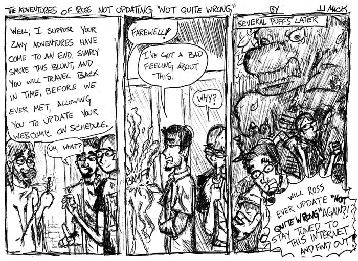 It's Wednesday night and I'm dead tired. No big post today. There will be a comic up for Friday, though I'm still figuring out what it's all about. |